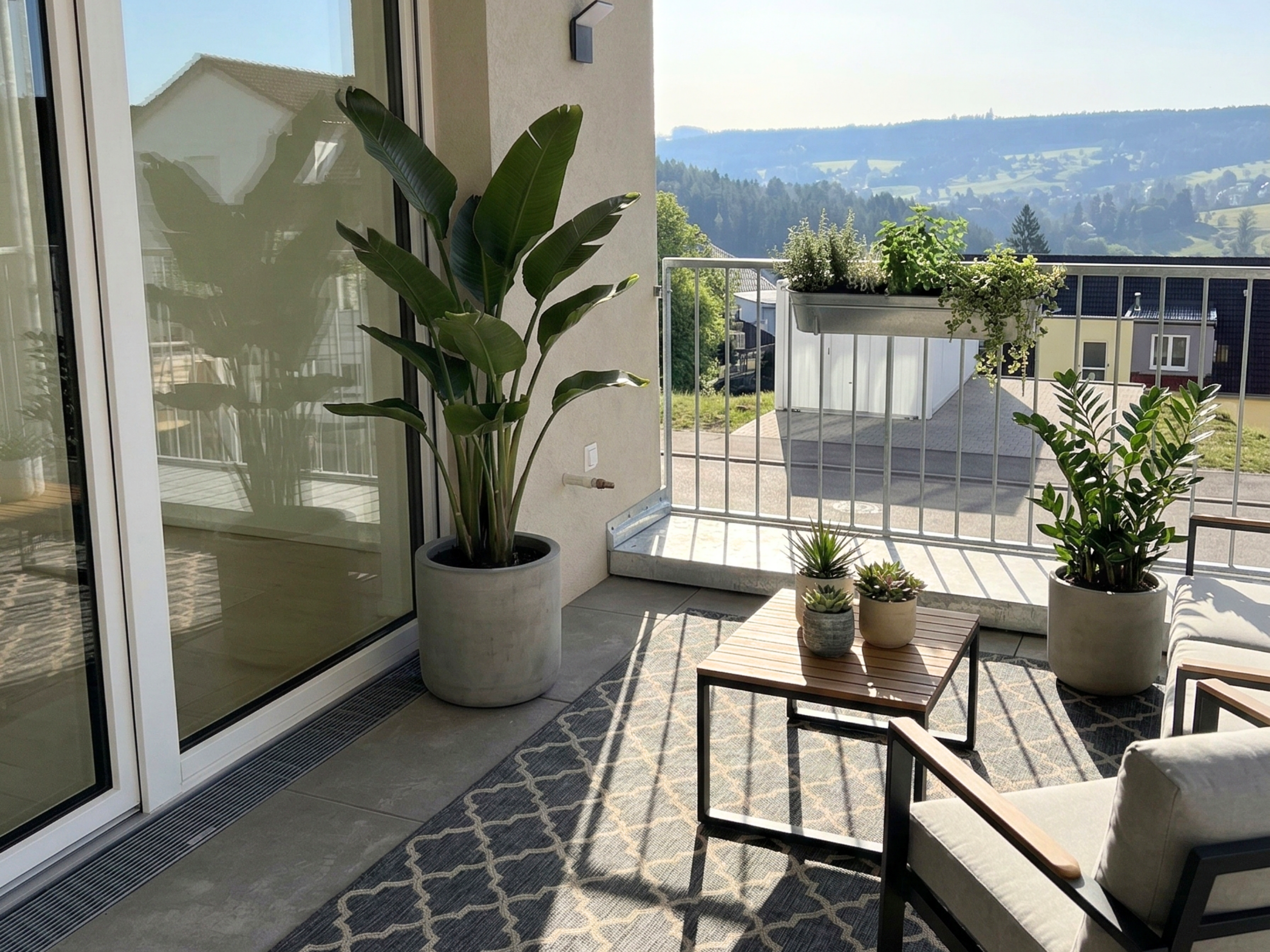 - sonnige Terrassen und Balkone